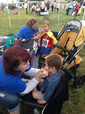 September 12th - CASA's SuperHero 5K. Ellie was so excited to get to both dress up AND run a race with her Daddy. Her two favorite things rolled into one! All the kid one-mile finishers got a cape and there were tons of activities for the little ones while the 5K continued: petting zoo, face painting, bean bag toss, etc.